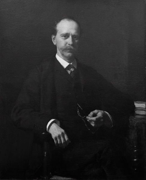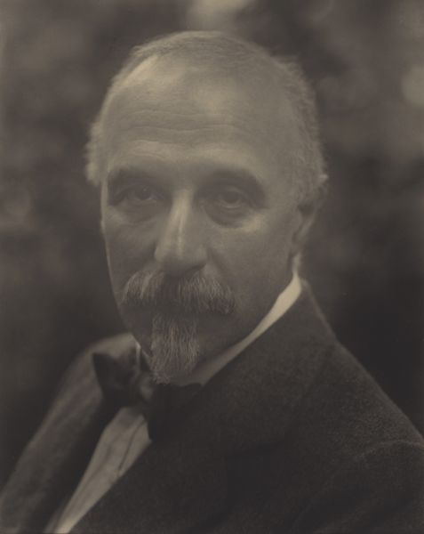 Curator: Here we see John H. Garo's photograph, "Phillip Little, Artist," currently held at the Harvard Art Museums. Editor: Immediately, I'm struck by the soft gradations of tone and the shallow depth of field, creating an almost ethereal quality. Curator: Garo masterfully uses light to suggest character, drawing out the sitter's intellectual gravitas through the glasses and meticulously groomed mustache, symbols of his era's educated elite. Editor: Observe how Garo guides our gaze. The composition is cleverly structured, leading the eye from the lighter areas of the face down to the darker suit, anchoring the figure within the frame. Curator: This portrait subtly reflects the late 19th, early 20th-century reverence for arts and letters, presenting Little as a figure of quiet authority within that world. Editor: Yes, the formal elements work synergistically to create an image of restrained dignity, a study in subtle contrasts and tonal harmony. Curator: It’s a potent reminder of how photographic portraits can encapsulate and transmit cultural values across generations. Editor: Indeed, a fascinating interplay of light, shadow, and societal representation.