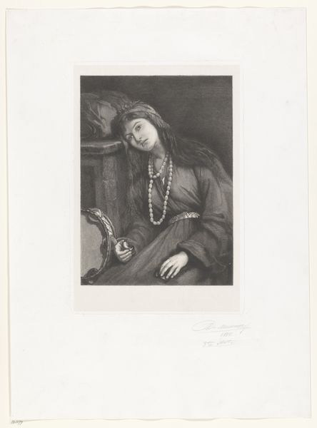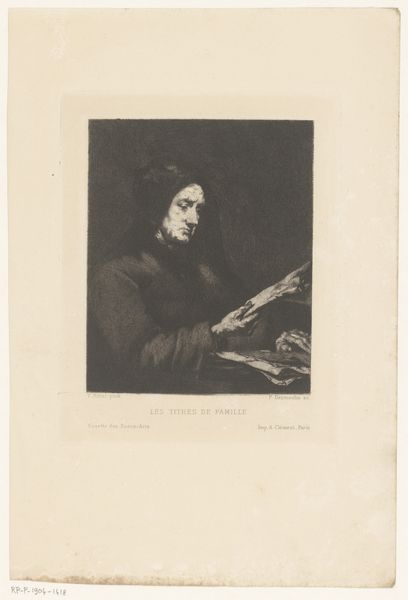 This is William Unger's "Portrait of Titus van Rijn," made sometime between 1837 and 1932, though an exact date is unknown. Unger was a master of engraving, and this work exemplifies that demanding practice. Look closely, and you'll see the subtle tonal gradations he achieved through careful, controlled cutting into the metal plate. The image wasn't simply drawn; it was coaxed into being through meticulous labor. Unger's skill speaks to the culture of printmaking at the time, where technical virtuosity was highly valued. This wasn't just about reproducing an image; it was about celebrating the engraver's artistry. Consider the social context: Unger was part of a burgeoning art market, where prints made art accessible to a wider audience. His work reflects not only his own skill but also the economic forces that shaped the art world. Ultimately, understanding this print requires acknowledging both Unger's hand and the broader world of materials, making, and context.