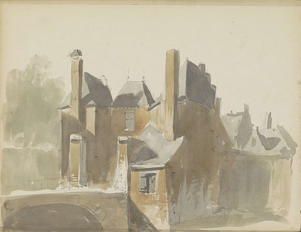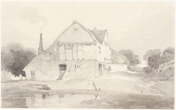 Editor: This is William Alexander’s "The Back Yard of an Inn at Dorking." It’s a watercolor drawing with soft, muted colors. It makes me think about the daily lives of ordinary people. What stands out to you? Curator: Notice the emphasis on the inn’s structure – the brickwork, the timber. Alexander highlights the materials and the labor involved in its construction. It becomes less about picturesque beauty and more about the means of production, don't you think? Editor: That's interesting. So, you're focusing on the labor and materials instead of just the aesthetics. I hadn't thought about it that way. Curator: Exactly. Consider the social context: who built this inn, and for whom? It shifts our understanding of landscape drawing itself. Editor: I see. Examining the materials opens up a whole new perspective on the artwork. Curator: Indeed! It makes us think about the people and processes behind what we see.