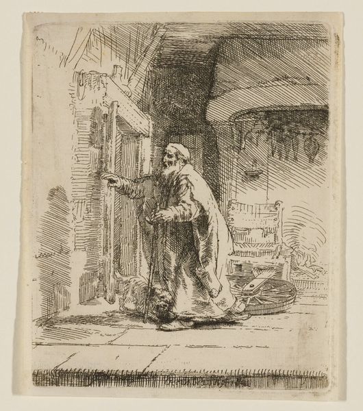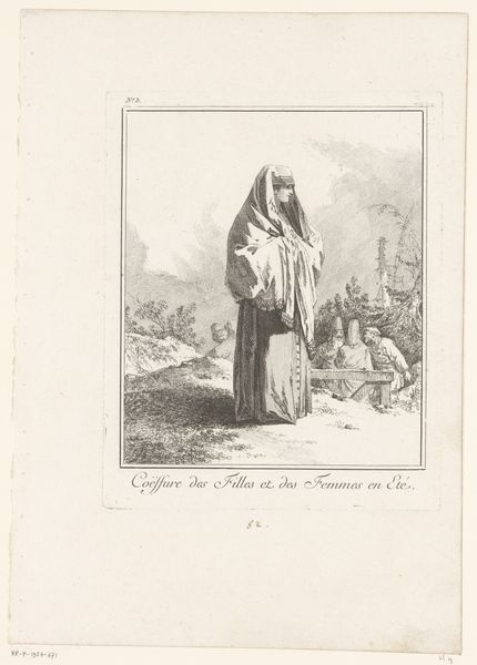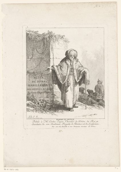 Giuseppe Sardi created this print, titled "Three Oriental Figures," using etching. In this artwork, three men, identifiable by their turbans and robes, stand in conversation near what appears to be an entrance. Sardi's print offers us a window into the 18th-century European fascination with the "Orient," a term laden with historical and cultural complexities. During this period, depictions of people from the Middle East and Asia were often filtered through a lens of exoticism. Sardi’s composition invites us to consider the power dynamics inherent in representation. How did Europeans perceive and portray those they considered "other"? Were these images rooted in genuine understanding, or did they perpetuate stereotypes? The emotional tenor of the artwork hints at an interplay between curiosity and perhaps, a subtle sense of cultural distance. Through the details of attire and setting, Sardi constructs a narrative that speaks to both the allure and the potential misunderstandings that arise when cultures meet.