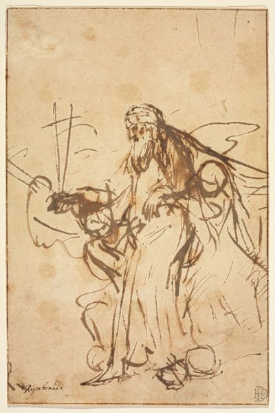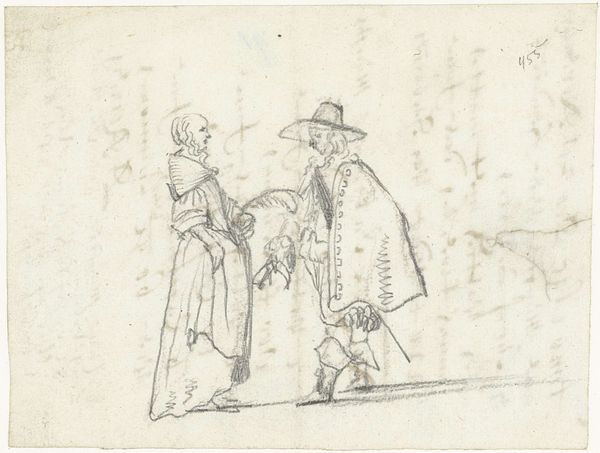 J.F. Clemens’s drawing, likely made sometime in the late 18th or early 19th century, depicts the mythological figure Rhadamanthus encountering Cardinal Richelieu. Rhadamanthus, a judge of the underworld, is marked by his staff and the authoritative gesture of his raised hand. Consider how the motif of the raised hand as a gesture of authority, of divine judgment, echoes through art history. We see it in depictions of Christ as Pantocrator in Byzantine mosaics, and later, in secular contexts, as a symbol of power and command in portraits of rulers and statesmen. The gesture carries with it a deep psychological weight, evoking feelings of awe, fear, and submission. Yet, the meaning of such symbols shifts. Rhadamanthus, in the context of Clemens’s work, becomes a figure through which to contemplate justice and authority. This drawing is a reminder of how cultural memory, embedded in symbols, continues to shape our understanding across time.