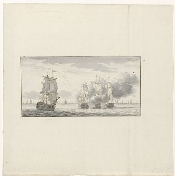 Carel Frederik Bendorp’s engraving depicts Willem Crul's ship under attack by the English in 1781. The dominant symbol here is the naval vessel, a potent emblem of power, trade, and national pride during the age of exploration and empire. Consider how the ship, as a vessel, echoes the imagery of the Ark from the Old Testament, carrying not only people but also the promise of salvation and survival. The motif of the ship transcends mere transport; it embodies the hopes, fears, and ambitions of an entire culture. We see it reappear in funerary art across cultures, guiding souls to the afterlife. Here, however, the ship is engulfed in battle, a visceral scene charged with anxiety and aggression. The smoke of cannons evokes a collective memory of conflict, tapping into primal fears of destruction. This image, therefore, is not simply a historical record but a stage upon which deep-seated cultural anxieties play out.