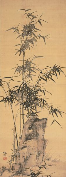 Curator: The spare, elegant lines of this ink painting immediately strike me as serene. The monochrome palette emphasizes texture and form. What do you think? Editor: The symbolism of bamboo is fascinating. Notice how it sways in the wind, yet it doesn’t break; a visual representation of resilience, of adaptability. You can feel the breeze even without the colour! Curator: Indeed. It’s compelling to consider the social context here. Deng Yu, the artist, painted "Bamboo and Rock" sometime between 1350 and 1377, during the Yuan Dynasty. How do you read this period's politics in Yu’s chosen imagery? Editor: Bamboo and rock, often depicted together, carry layers of symbolic weight in East Asian art and culture. Rock symbolizes permanence, steadfastness, while the bamboo underscores flexibility and uprightness, reflecting Confucian values. Look at the cultural memory embedded in these two elements and the psychological need for hope. Curator: A compelling connection to Confucian ideals. Considering the foreign rule imposed by the Yuan Dynasty, do you think Yu’s choice of subject matter can be interpreted as a form of subtle resistance, an assertion of cultural identity? The image appears simultaneously yielding and unyielding. Editor: That’s a key point. He painted the characteristics that resonated with the time: resilience in the face of adversity and suppleness in response to power dynamics. In an oppressive sociopolitical context, what iconographic strategy could be better? The strength in bamboo is hidden but resolute. Curator: Looking at this piece within an intersectional framework allows us to recognize how identity, in this case, cultural identity, becomes intertwined with resistance and survival strategies during times of oppression. We see that this painting on paper with ink is not just decoration. Editor: Exactly, we appreciate "Bamboo and rock" not only as a serene nature scene, but also as an intricate weave of cultural endurance expressed through long-standing visual languages. The symbols speak! Curator: Reflecting on this artwork allows me to appreciate how political statements often present subtly through historical visual metaphor, even today. Editor: It serves as a potent reminder that images, even simple ones, transmit complex emotional and intellectual wisdom across generations.