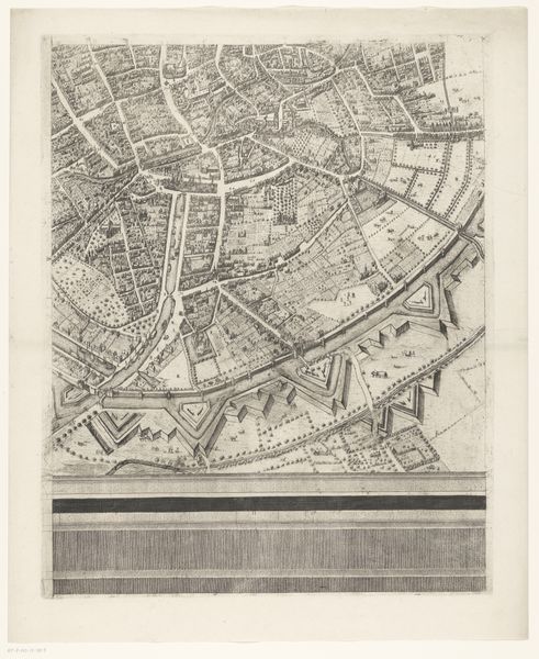 Editor: This engraving, "Den Bosch belegerd door Frederik Hendrik, 1629," by an anonymous artist, illustrates the siege of a city. The incredible detail rendered using lines and hatching makes it appear very dense. It's fascinating how a functional object like a map is transformed into a piece of art through craft. What can you tell me about the significance of prints like this? Curator: Think about the act of making and distributing this print. It's not just about representing a historical event; it's about constructing and disseminating a specific narrative. This engraving served a purpose; It’s a record, but it also speaks volumes about 17th-century Dutch printmaking and the socio-political environment in which it was produced. Editor: How so? Curator: Engravings like these democratized access to information and imagery. The "how" is vital here. Look at the material constraints: the metal plate, the labor of the engraver, and the printing process itself. These informed the aesthetic and its dissemination. It was reproducible art made for distribution, unlike an oil painting. Editor: So the very process shapes the meaning? The artist's, or the workshop’s, skill directly enabled the spread of news and political viewpoints, kind of like mass media today. Curator: Precisely! The networks of production, trade, and consumption were all interwoven. Furthermore, the relatively low cost of prints compared to paintings expanded art’s consumer base. This print became a commodity with social and political currency. What are your thoughts about it being “art” though? Editor: It’s thought-provoking. The craftsmanship and narrative embedded in this seemingly functional map challenges our traditional notions of 'art' by emphasizing production, materiality, and accessibility over solely aesthetic considerations. Thanks, that really changes how I view this! Curator: Indeed. Seeing the material reality helps unlock deeper historical meaning.