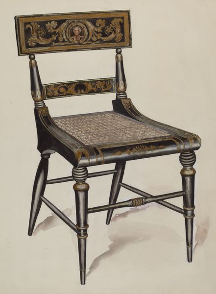 Curator: Here we have Einar Heiberg's "Boston Rocker," created around 1938. It's a drawing, primarily done with pencil and charcoal. Editor: Oh, immediately, that puts me at ease. Something so domestic rendered so carefully. The detail in the carved headrest...it invites daydreaming. Curator: Absolutely. These drawings served as records. They helped document the furnishings popular amongst middle-class families. It’s art performing a sociological role. Editor: True, but the artistic choices amplify that. Notice the slightly elevated perspective—it subtly transforms a humble object into something worthy of contemplation. Curator: The drawing itself takes on new context. It’s as much about the rocker as it is about the values associated with home and comfort during a turbulent period. The Great Depression wasn't that far in the rearview mirror, and the world was lurching towards war. Editor: Comfort food for the eyes. Maybe that's why it strikes me as hopeful, rather than nostalgic or sad. The geometry has this quiet confidence about it, like this chair is just...waiting for its moment. A bit timeless really. Curator: You’ve hit upon something key there. Consider the Rocker as a democratizing force – affordable, practical, stylish... its appeal was wide. Heiberg is capturing that spirit, making something lasting from the everyday. Editor: I keep coming back to the artistry. The blending of the pencil and charcoal, I can see the texture, how soft everything looks! Heiberg isn't just recording; he's romanticizing. Curator: Which shows us the politics of imagery are very slippery indeed. What seems like simple documentation has an aesthetic bias baked in. Editor: Absolutely. So this "Rocker" rocks more than just a sitter back and forth! Curator: Indeed, it seems to have gently rocked our perceptions too. It seems like there are still other sides that it could make one perceive... Editor: It certainly gives a comfy visual place for one's perceptions.