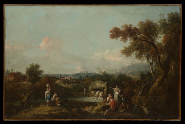Francesco Zuccarelli painted this "Italian Landscape with a Mountain Stream" to capture an idealized vision of the Italian countryside, a popular theme during the 18th century. However, beyond the surface of pastoral beauty lies a complex interplay of social and cultural ideals. The figures in the landscape, seemingly at leisure, reflect the era’s romanticized view of rural life, carefully composed for the consumption of a privileged class, the Grand Tourists. Zuccarelli skillfully presents a vision of harmony between humans and nature, yet it's a harmony constructed upon certain social and economic realities. The painting romanticizes labor. The lives of the peasantry, so picturesque from afar, were undeniably shaped by hardship. Does this painting offer a true reflection, or does it selectively omit the harsh realities of rural existence? Ponder that.
