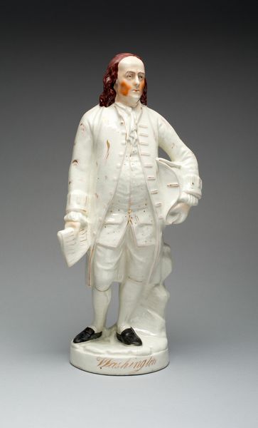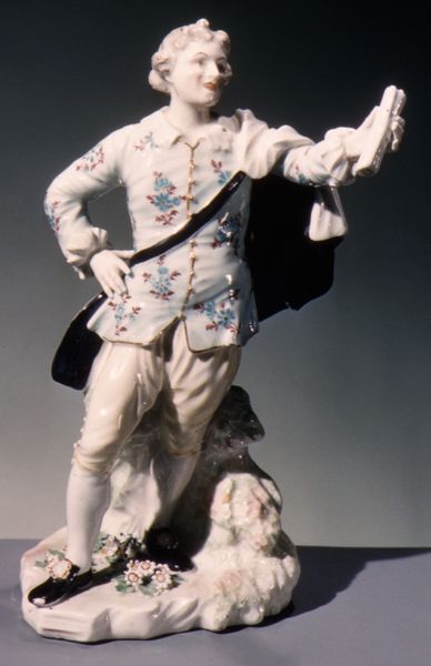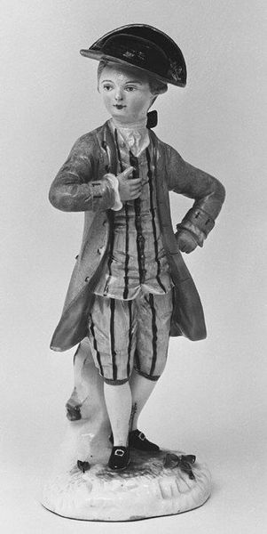 This porcelain figure of a child was crafted in the late 18th century by the Fulda Pottery and Porcelain Manufactory. Observe how the child is dressed in the fashion of the era, with meticulous detail in the rendering of his coat, waistcoat, and breeches. His stance, with one hand casually placed on his hip, is particularly telling. This pose echoes across centuries, reminiscent of classical sculptures where the contrapposto stance conveyed dignity and self-assurance. We see it echoed in Renaissance portraits, the hand on the hip a signifier of power and confidence. But here, on a child, what does it signify? Perhaps a commentary on the affected manners of the aristocracy, where even children were taught to embody a certain posture. The formal attire and confident pose create a tension, a psychological interplay between innocence and artificiality. It invites us to reflect on how society shapes identity. The image is frozen in time, yet its echoes resound through history, constantly shifting, adapting, and reappearing in new forms.