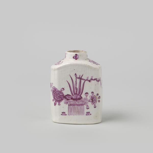 Editor: Here we have a silver and carved tea caddy, dating back to around 1700, by Eusebius Willem Voet. I'm really drawn to how this small object showcases a kind of idealized vision of Asia. How do you interpret its style? Curator: Indeed. It’s tempting to appreciate this piece purely for its aesthetic qualities. However, it’s crucial to acknowledge that the Asian motifs are likely not accurate representations. The piece participates in a long history of Western artists and artisans borrowing, reinterpreting, and often misrepresenting imagery from Asia. Consider, what does this say about the global exchange of goods and ideas during this period? Editor: That’s fascinating! I hadn’t considered the potential inaccuracies in the depiction. Does that relate to the piece being labeled "decorative-art?" Curator: It's deeply connected. The decorative arts, particularly objects like this tea caddy, often became vehicles for expressing cultural power and shaping public perception. The value wasn't so much in accurate cultural representation but in creating an exotic, marketable commodity for the rising bourgeoisie. How do you think the use of silver factors into this? Editor: Perhaps to increase its perceived value and signal the owner's wealth and refinement? Curator: Precisely! Silver elevates the object beyond mere functionality. Also, don't overlook tea's cultural status and trading relationship to Britain, which makes it such a luxury commodity to encase in a costly container. So, considering all this, how might we reassess our initial understanding of this “decorative” object? Editor: I now understand it as something much more than just visually pleasing! It shows the social and historical currents and power dynamics during the period. I appreciate your insightful perspective. Curator: And I am grateful for your fresh pair of eyes which let us consider new insights into cultural dynamics of past artwork.