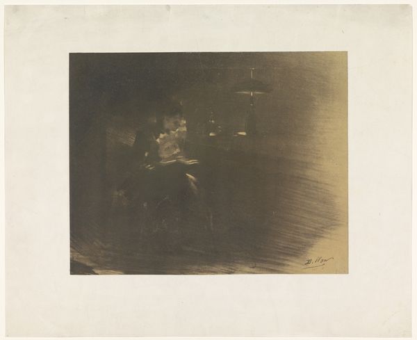 Curator: Looking at this gelatin-silver print titled "Reproductie naar een foto van Willem Witsen," made sometime between 1860 and 1915, I'm immediately struck by its tonal quality. The shades of grey seem to almost breathe. Editor: Yes, the limited tonal range definitely adds to the intimacy. It's the raw simplicity of the monochrome, focusing on the essential elements of the composition, and the photographic process involved that draws me in. Curator: It depicts a man and a baby sitting in the grass, almost melting into the natural surroundings. This work invites questions around class and identity at the turn of the century, reflecting how notions of family were both represented and idealized in photography. Editor: Absolutely. The medium itself is doing so much work here. Consider the labor and the access involved in even commissioning a photograph like this in this period. Who was this man? How did this material and its related production afford or deny the shaping of familial image making? Curator: It also feels significant to consider the image through a contemporary lens. Thinking about performative masculinity alongside constructions of tenderness in a post-colonial Dutch context. How do these layers interplay with the sitter's gaze, the very act of presenting themselves to the camera? Editor: And think about the choices made in developing this particular gelatin-silver print. The labor and decisions, the exposure, the chemicals used. Each step transforms raw materials into meaning, into something we can consume with our eyes a century later. Curator: I’m finding the image incredibly touching now. Its tenderness makes me question how historical biases and structures influenced even these seemingly quiet moments. Editor: Exactly! It encourages us to investigate those silent but material influences that frame our very understanding of identity.