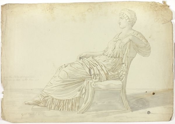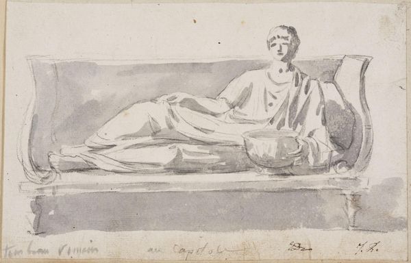 Editor: This is Richard Austin's "Monument to Mrs. Thompson," made sometime around the late 18th or early 19th century. The figure seems to be resting, but also looks melancholic. What societal messages were Austin trying to portray? Curator: Well, the monument's placement within the church is key. Who was Mrs. Thompson, and what role did monuments like this play in the social hierarchy of the time? Consider the power dynamics at play in memorializing someone this way. Editor: It definitely makes you think about who gets remembered and why. Curator: Exactly. The public display of grief and status was a carefully constructed performance. Something to keep in mind when viewing art of this era.