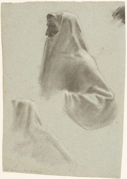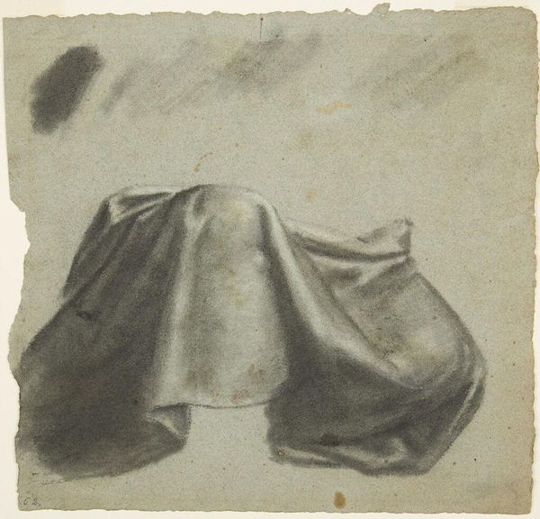 Editor: Here we have Washington Allston's study, "Jeremiah's Left Arm and Drapery." I'm struck by the delicate rendering of the fabric, especially given it's a preparatory sketch. What do you make of this focus on drapery? Curator: Indeed. Observe how Allston uses subtle gradations of light and shadow to define the form. The tonal range, from the almost imperceptible highlights to the deep, enveloping shadows, is exquisite. The folds themselves create a visual rhythm, drawing the eye across the surface. Editor: So, the drapery isn't just fabric; it's almost a subject in itself? Curator: Precisely. The arrangement becomes an exercise in pure form. One might even argue that the rendering of the drapery eclipses the anatomical representation, becoming the focal point of our attention. Editor: I see it now; the lines and shadows create a sense of movement. I appreciate the emphasis on the formal elements.