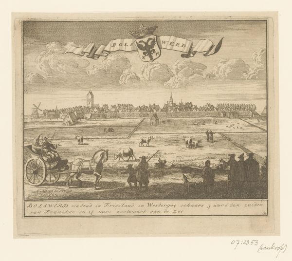 This anonymous print captures the Amstelkerk in Amsterdam, a church whose name is boldly inscribed on floating banners in the sky. These banners, reminiscent of triumphal standards from antiquity, represent a fascinating twist on religious iconography. Traditionally, banners or flags carried into battle or displayed in civic processions symbolized power, victory, and allegiance. Here, the sacred name of the church is paraded across the sky, almost as if claiming dominion over the cityscape. Think back to the Roman practice of inscribing deities' names on shields and standards, believing it would invoke divine protection. Has the artist perhaps evoked this tradition to suggest the pervasive influence of the church over daily life? This visual echo resonates through time, reminding us how symbols evolve, adapt, and continue to carry deep cultural weight, engaging us on a subconscious level with echoes of history.