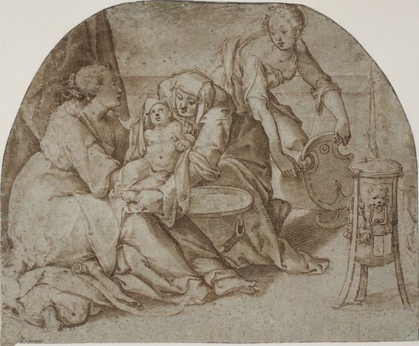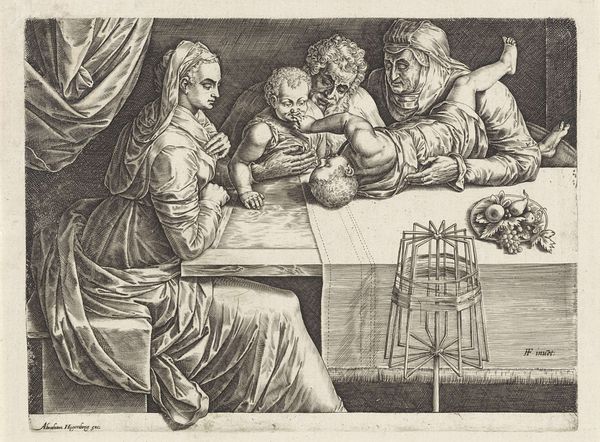 Jacopo Francia made this print, Holy Family with Saint Elizabeth and the Infant Saint John the Baptist, sometime in the 16th century. It’s an etching, a printmaking technique where the artist uses acid to cut into a metal plate, which is then inked and printed. Look closely, and you'll see that Francia wasn't only concerned with depicting a sacred scene. He pays particular attention to the textures and activities of domestic life. Saint Elizabeth is shown with a distaff and spindle, tools associated with spinning flax into thread - women’s work. See how Francia renders the wisps of fiber, almost like a halo, emphasizing the dignity of labor. The etching process itself also demanded intensive labor and skill, as Francia controlled the corrosive action of the acid. These lines create areas of tone and shadow, a testament to both the subject and the making. So, next time you look at a print, consider not only the image but also the hands and the processes that brought it into being. It can tell us a lot about what the artist and society values.