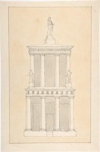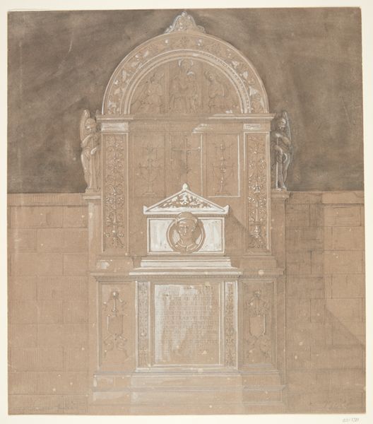 This is a design for a niche, made with pen and black ink, with gray wash, over graphite. The drawing depicts an elaborate urn centered in an arched alcove. The cultural significance of such an image resides in the neoclassical revival. Thinkers turned to ancient Greece and Rome for inspiration in art, architecture, and politics. An object like this urn, intended for display, speaks to the era’s aesthetic values, its emphasis on symmetry, order, and the gravitas of antiquity. While the artist remains unknown, the drawing itself tells us about the institutional structures. It implies the existence of schools or workshops where such drafting skills were taught and refined. We may also consider how wealthy patrons could have commissioned designs like this to showcase their education and refined taste. To understand the drawing, we should consult architectural treatises, pattern books, and social histories of the period, all of which will shed light on the drawing’s place in the cultural landscape of its time.