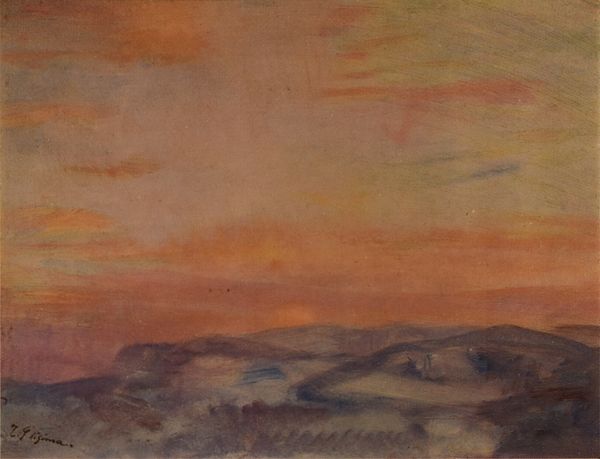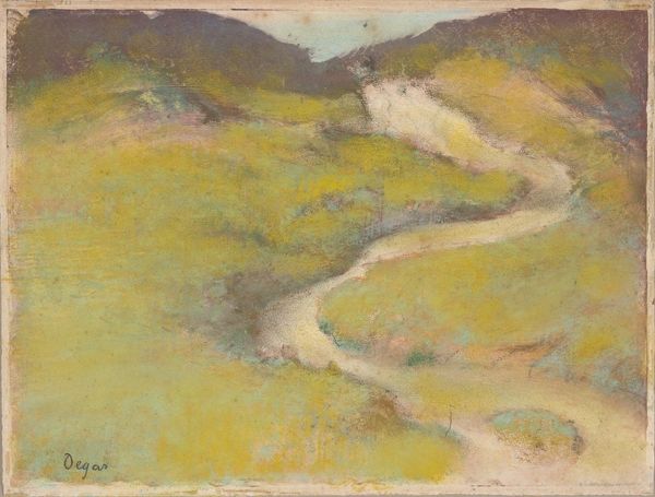 George Hendrik Breitner made "A Heath Landscape, Presumably in Drenthe," with oil paint, likely in the late 19th or early 20th century. The ochre and green palette feels like a slow exhale, a kind of visual meditation on the land. It's all about process, you know, how one color melts into the next. Looking closely, the paint has this tactile quality, almost crusty in places, thin and washy in others. You can practically feel the push and pull of the brush, how Breitner loaded it up with pigment then dragged it across the canvas, leaving behind these little peaks and valleys. The texture is particularly evident in the lower part of the painting. It reads as a field of low lying shrubbery. Reminds me of Courbet, maybe, in that way he just went for it, no fuss, no frills. Ultimately, it's a reminder that art is less about answers and more about the questions we ask along the way.