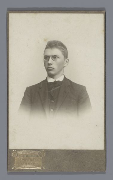 Editor: Here we have "Portrait of an Unknown Young Man," taken between 1865 and 1879, by Achille D'Orsi. It's a gelatin-silver print, so a photographic print. There's something very still and composed about it. What strikes you most when you look at it? Curator: I'm immediately drawn to the materiality. Think about the silver mined, processed, and then expertly applied to create this image. It speaks volumes about industrial development, labor, and the evolving role of photography as a commodity, almost a replacement of painting for certain strata in society. How does its status as a mass-produced object challenge our notion of the unique art object? Editor: That's a really interesting way to look at it, I hadn't considered photography as a mass-produced object in that era. I suppose I was still thinking of portraiture as a high art form, rendered in paint. Does focusing on materials change our view of portraiture? Curator: Absolutely! Analyzing the materials and their origins roots this "portrait" in a specific economic and social system. The cost and accessibility of gelatin-silver prints in this era define who could afford such a portrayal, who was excluded, and how social identities were constructed and affirmed. Does the sitter’s formal wear seem less individual now? Editor: Definitely. I see the access to formalwear as another layer of material wealth that helped construct his identity. The photo feels less about "him" and more about his place within a system of production. Curator: Precisely. We move away from notions of inherent genius or artistic vision toward a critical understanding of the power structures and economic forces at play. Editor: That really shifts my understanding of the artwork. I thought the portrait was an attempt to capture a specific person's identity, but looking at it through the lens of material and labour really makes it seem like a documentation of a particular system. Curator: Exactly, and by analyzing the physical making, we connect it to a far wider story of its time.