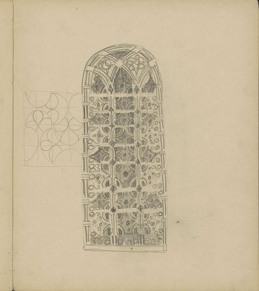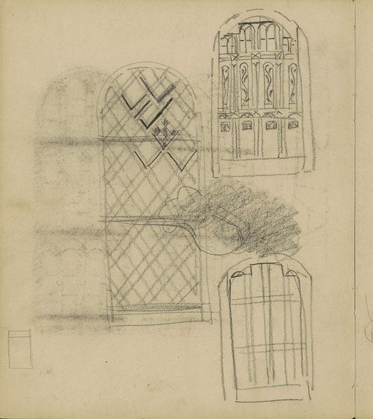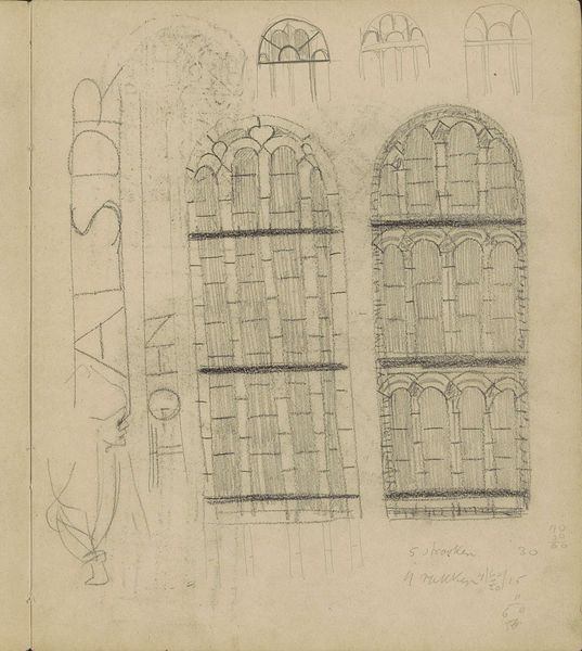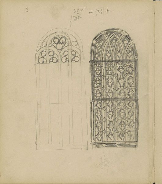 This is a pencil drawing of church windows by Carel Adolph Lion Cachet, located in the Rijksmuseum. Cachet, who lived from 1864 to 1945, was working during a period of significant change, which saw shifts in religious and social structures. The drawing captures Cachet's vision for the windows, complete with intricate wrought iron detailing. The emphasis on the church windows as a focal point reflects the central role of religion in shaping community identity and architectural expression. Cachet's drawings offer insight into the design choices and aesthetic considerations of the time. Rather than traditional representations, his development of alternative narratives illustrates a time when religious institutions were reckoning with modernity. Through his art, Cachet prompts us to consider the evolving role of religious spaces in shaping community identity and cultural expression.
