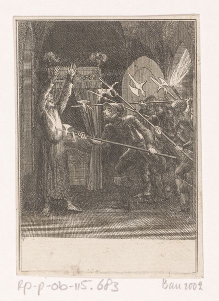 Curator: Standing before us is Carl Bloch’s etching, "Læsende dame," or "Reading Lady," created in 1882. The work is currently housed in the Statens Museum for Kunst, Denmark’s national gallery. Editor: My first thought? Quiet. Almost oppressively so. The dark background kind of swallows the scene, focusing all the attention on her, the reading lady. You can almost hear the rustle of the pages she is flipping. Curator: It's an intimate glimpse into a private, domestic sphere. We see this lady engrossed in her book in a carefully orchestrated, Realist manner. There's a significant rise in portraying the private lives of the bourgeoisie during this era. It is considered an important piece of intimism. Editor: The texture created through the etching is pretty remarkable too. Everything from her dress to the carpet has this layered feeling to it, creating this world. Does she even notice us looking? I love that the vase on the table has equal weight in the drawing as the woman. Curator: Indeed! Note the considered composition that frames her activity. The artist places as much emphasis on setting, reflecting the 19th-century obsession with the domestic and the increasing social value placed on reading and intellectual pursuits for women. It became culturally important and valuable for upper-class ladies to become erudite and well-read. Editor: It really does speak of calm concentration. Though... is it only me, or does she seem a little lonely? Isolated in this interior of decorative objects. Even the way the artist composed the scene makes it seem she has shut us, the viewer, out of her space. Curator: Possibly. Art often embodies more than what it portrays. It reflects as much as it records. The lady reads while we look at her, we judge, we reflect... It's all part of how images circulate through culture. Editor: Maybe that's why it holds me captive: not just for its peacefulness, but because the act of looking makes me part of it all too. I feel almost as introspective as she does.