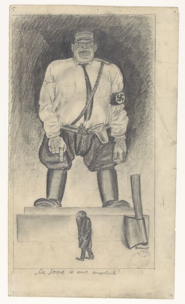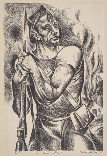 Edwin Chapman rendered this image of ‘G.I. Joe’ with graphite on paper. Here, the artist invokes a symbolic figure that emerged from the crucible of the Second World War. "G.I. Joe" was a term that distilled the collective identity of the American soldier. The image encapsulates the cultural and historical associations of the United States during this era. It speaks to the social conditions that shaped artistic production in a time marked by conflict, where art served as a tool for morale and propaganda. Consider the role of institutions, such as the military and the media, in shaping the perception of the soldier. Was this a conscious effort to idealize or sanitize the realities of war? Or does it critique the institutions of art that might perpetuate such narratives? To delve deeper into the subject we might research archives, newsreels, and personal accounts. The meaning of this artwork lies in its contingency on social and institutional context.