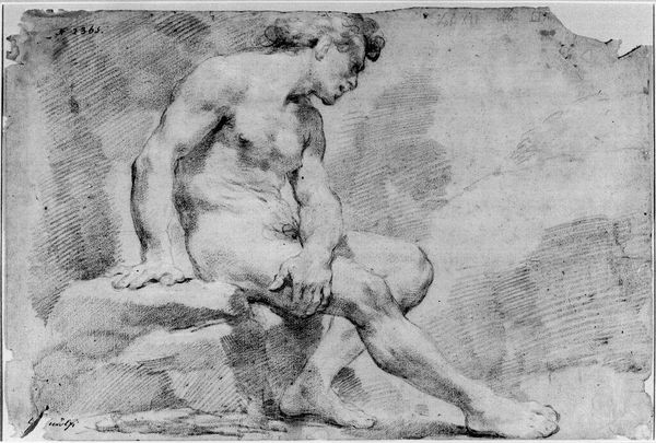 Editor: So, here we have François Boucher's "Seated Nude" from 1738. It's a drawing, looks like charcoal on paper. The initial impression I get is almost unfinished. It’s raw and immediate. What stands out to you in this piece? Curator: What interests me most is the materiality of the drawing itself. Think about the charcoal. Where did it come from? Was it a common material, readily available, or was its production a specialized craft in the 18th century? How does the surface of the paper itself impact the artist’s process? Editor: That's interesting! I hadn't considered the paper itself. Does its quality change the perceived "value" of the piece? Curator: Precisely! Consider the hierarchy inherent in art materials. Oil paint and canvas, even marble, were often viewed as inherently superior, designating works of “high art.” But here, we have charcoal, a comparatively humble material. By elevating a drawing, Boucher is implicitly challenging those material hierarchies. Editor: So, he's using these "lesser" materials to create something beautiful, forcing a reevaluation of what's considered art? Curator: Exactly. And consider the social context: Who was producing the charcoal? Were these materials impacting or influencing other craft forms at the time? This is not merely about an aesthetic depiction of the nude female form, but a broader question about material value, labour, and the means of artistic production itself. It really emphasizes the link between high art and production. Editor: I see it in a whole new light now! Focusing on the charcoal makes me wonder who produced it and the socioeconomic factors involved. Curator: Yes! That’s a vital perspective. Thinking about materiality opens up these avenues to look at art in relationship to manufacture and exchange. Editor: It’s amazing how thinking about the charcoal and paper changes the whole conversation around the drawing. Thanks!