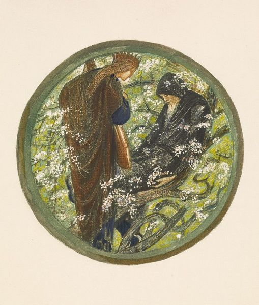 Edward Burne-Jones made this dreamy watercolor called 'Wake, Dearest' with a soft touch and a muted palette. There's a real sense of process here, like he's gently coaxing the image into being. The texture is so delicate; you can almost feel the grain of the paper. Those thin washes of color, especially in the drapery, create a luminous effect, as if the figures are emerging from a haze. Look closely at the way he's rendered the sleeping figure’s hair – those fine, almost feathery strokes give it a tangible sense of volume and light. It's so different from the figure draped in black, whose pose is more certain, more active. Burne-Jones reminds me a bit of Gustave Moreau, in the way he uses symbolism and creates these otherworldly scenes. Both artists were invested in the idea of art as a space for imagination and reverie, where the boundaries between reality and dream blur. The painting invites us to embrace ambiguity and multiple interpretations, leaving us to wonder about the nature of the scene.