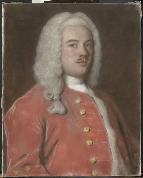 Curator: Here we have John Singleton Copley's portrait of William Brattle, painted in the 18th century. Brattle was a prominent figure in colonial Massachusetts, a minister and a Harvard graduate. Editor: The first thing that strikes me is the color palette. A sort of fiery, vibrant energy, but also a feeling of… well, constrained power, wouldn't you say? He's almost glowing against that subdued landscape. Curator: Copley was highly sought after for his ability to capture the likeness and status of his sitters. Note the fine details of his attire, and how they reflect Brattle's position in society. Editor: It's like a performance, isn't it? The wig, the coat, the confident hand gesture—he's playing the role, maybe even for himself. What do you think of the way Copley uses light here? Curator: Indeed, portraits like these were instruments of power. Copley's mastery lay in his ability to convey not only a physical likeness, but a social one as well. Editor: Absolutely. Looking at this, I sense the weight of expectation, the pressures of leadership... and maybe just a hint of vulnerability beneath the wig. Food for thought, isn’t it?