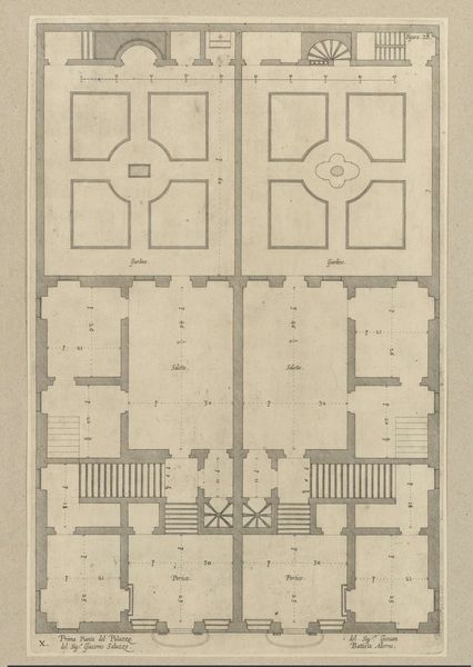 Curator: This print is titled "Drawing No. 2- Elevations of Foyer to Auditorium," and it's by William Channing Whitney. Dating back to 1930, it’s currently part of the Minneapolis Institute of Art's collection. What strikes you most about it? Editor: The first thing that comes to mind is the intensity of the blue. It creates such a strong graphic impact; almost feels like looking at a digital rendering despite its age. There's something serene but also very technical about it. Curator: The "blueprint" aesthetic we see in architectural drawings had, and perhaps still has, very specific social connotations. Mass production of blueprints were not possible until the late 19th century. The adoption of processes similar to the one we see here completely shifted the architecture industry as building plans could be reproduced ad infinitum. Do you think about this industrialization aspect when looking at this elevation? Editor: Absolutely. It also triggers considerations regarding the role of architects, designers, and marginalized laborers within that system. The labor hierarchy behind these impressive buildings is often invisible, yet their hands and lives have undoubtedly shaped every structure. Curator: The design evokes neoclassical and beaux-arts influences in American architecture, where accessibility and democracy are expressed through imposing yet carefully organized spatial planning. The very existence of such buildings would have been linked to ideas about progress and national identity. The use of columns, arches, symmetrical patterns—it all contributes to conveying a sense of stability and order. Editor: So the building becomes a metaphor for something greater: aspiration for order and power... Which is not always accessible. Are such grand architectural styles in themselves inherently exclusionary? We see how public buildings affect the circulation, access and visibility of various groups. The facade carries a social load. Curator: Precisely. These choices impact communities and shape our experience of civic spaces. Looking back, we have the opportunity to not only learn from design choices and achievements, but also to discuss ways we understand social needs within a physical context. Editor: Agreed. Art and architecture inherently invite us to consider the narratives embedded in form and space, prompting deeper inquiries into their purpose and effect, past and present.