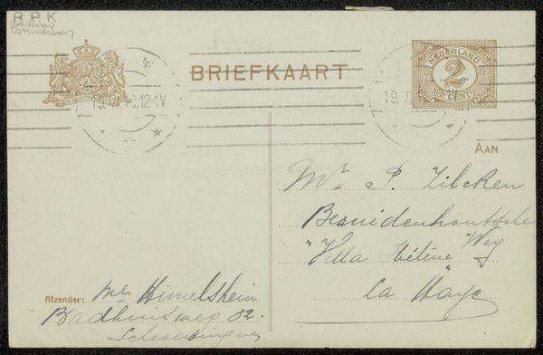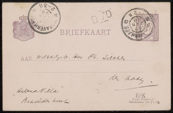 Curator: This is a postcard, “Briefkaart aan Philip Zilcken,” likely from 1909, penned by Willem Byvanck using ink on paper. Its monochrome aesthetic and the style of calligraphy certainly give it an old-world feel, doesn't it? Editor: Yes, it feels very personal, almost like eavesdropping on a private conversation. How do you interpret the significance of a seemingly mundane item like a postcard being preserved as art? Curator: Precisely. It challenges our notions of what constitutes art and who has access to it. We need to consider the context of early 20th century correspondence. Whose voices were being heard? How did power dynamics influence these interactions? How might this reflect the experiences of individuals excluded from the dominant narrative, perhaps marginalized communities or those whose stories are often erased? What does the seemingly innocuous handwriting tell us? Editor: That’s interesting. I hadn’t considered how something so ordinary could be a window into social structures. The fact that it's a personal message makes me wonder about the relationship between Byvanck and Zilcken. Curator: Absolutely. Examining the power dynamics implicit in the correspondence - their relative social positions, gender, even handwriting styles - offers insights into the hidden biases and unspoken rules governing their interactions. Think about who has the privilege of having their personal effects archived and displayed. What other narratives might be lost simply because they lack the means to preserve their own history? Does it reveal the inner anxieties in pre-war Europe? Editor: So, by analyzing this postcard, we can potentially uncover layers of social and political meaning beyond just the message itself? Curator: Exactly. We use objects like these to open dialogues about inclusivity, representation, and whose stories are told. What seemed mundane transforms into a potent vehicle for social commentary. It serves as a tool for critical reflection. Editor: This gives me a totally new perspective on looking at everyday objects as potential carriers of history and social commentary. Thank you! Curator: My pleasure! Now you can't unsee these hidden stories!
