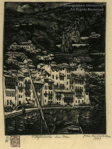 Joseph Pennell made this lithograph, "We Passed...the Parral," using grease on stone to create a range of light and dark. The process itself feels very present. It’s like Pennell is thinking out loud, letting us see how he builds up the image, mark by mark. Look closely, and you'll notice the grainy texture, almost like sandpaper, especially in the water. Then there are these bold, almost scribbled lines that define the trees and the buildings in the background. The buildings, particularly the tower, are solid and blocky against the fluid reflections in the water. I find myself drawn to the dark, almost chaotic marks at the bottom left, where the foliage meets the water. There's a sense of energy, a kind of raw, unfiltered expression. It reminds me a bit of Whistler's lithographs, especially in the atmospheric quality, but Pennell has a more direct, less refined approach. It's like he's saying, "Here's what I saw, here's how I felt," without any pretense. And maybe that's what art is all about, the ongoing conversation of seeing and feeling, passed down from one artist to the next.