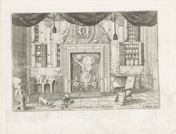 J. Hermans made this print in 1633, depicting Ernst Casimir, his death at Roermond, and the interior of the Grote Kerk in Leeuwarden. The print encapsulates significant social and cultural themes prevalent in the Dutch Republic during the 17th century. We see not only the glorification of military leaders but also the important role of the church in commemorating important figures. The image creates meaning through visual codes associated with power, death, and remembrance. The portrait of Ernst Casimir, framed by allegorical figures and a skull, establishes him as a noble figure. The depiction of his death at Roermond connects him to military prowess, and the interior of the Grote Kerk highlights the institutionalization of his memory. During this time, the Dutch Republic was shaped by its struggle for independence, which influenced artistic production. Understanding this artwork requires delving into the history of the Dutch Republic, the role of military leaders in shaping national identity, and the ways in which institutions, like the church, contribute to the construction of collective memory.