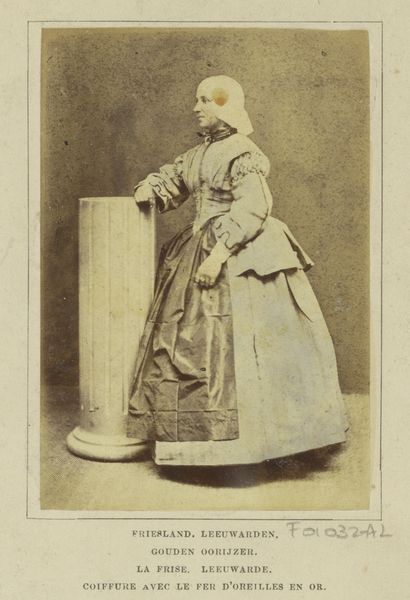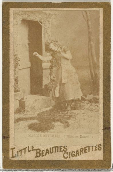 Editor: This is "Card Number 22, Lotta" from the Actors and Actresses series, an albumen print from the 1880s, by W. Duke, Sons & Co. I’m immediately struck by the…ordinariness of it? It’s trying to be alluring, with the glimpse of Lotta behind the screen, but it feels a little awkward. What do you see in this piece? Curator: Ah, “Lotta.” These cards, distributed with Duke Cigarettes, are more than simple advertisements; they’re potent carriers of cultural memory. What do you think "Lotta," likely a popular actress, signifies in this image? Editor: Hmm, besides selling cigarettes? I guess she represents entertainment, maybe a touch of glamour associated with the stage. It feels… performative, a posed intimacy. Curator: Precisely! And how does that performance interact with the symbolism present? Notice the screen – a barrier, yet also an invitation. The veil she clutches further complicates the narrative; concealment and revelation coexisting. What emotions do these symbols evoke in you? Editor: I get a sense of fleeting fame, of manufactured celebrity. The screen feels almost like she is boxed-in. Curator: Indeed. Consider also the ephemeral nature of these cards. Discarded after the cigarettes were consumed, yet now preserved. They hint at a longing, and the ephemeral nature of desire and aspiration that even cigarettes hope to momentarily embody. Even now, the "best" of cigarettes seem to hope for lasting connection. Editor: That makes me think about how celebrities are used today. We create and consume images just as quickly, hoping for connection, maybe a modern form of longing. Curator: Exactly. And through this image, and Lotta’s pose, a century of performance, advertisement, longing and the cultural obsession with celebrity connects. Editor: I hadn't thought of that. Thanks so much. This image now tells a bigger story.