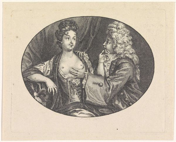 Guilliam de Gheyn made this engraving, Gevoel, which is Dutch for 'Feeling', around 1630. The image captures a tender moment between a well-dressed couple, emphasizing touch as a form of emotional expression. In the 17th century Netherlands, images like this reflected a growing interest in portraying everyday life and human emotions. This shift was partly influenced by the Dutch Republic’s unique social structure, where a wealthy merchant class played a significant role in shaping cultural values. The emphasis on personal feelings can be seen as a progressive departure from more formal, religiously focused art of the past. The engraving also offers insight into the fashion and social customs of the Dutch Golden Age, where outward displays of affection were becoming more accepted in certain social circles. To understand this image better, researchers might explore historical texts on Dutch social customs, fashion, and the role of art in shaping cultural values. Ultimately, this engraving speaks to the power of art to mirror and influence the social norms of its time.