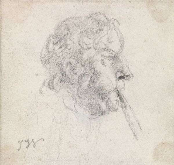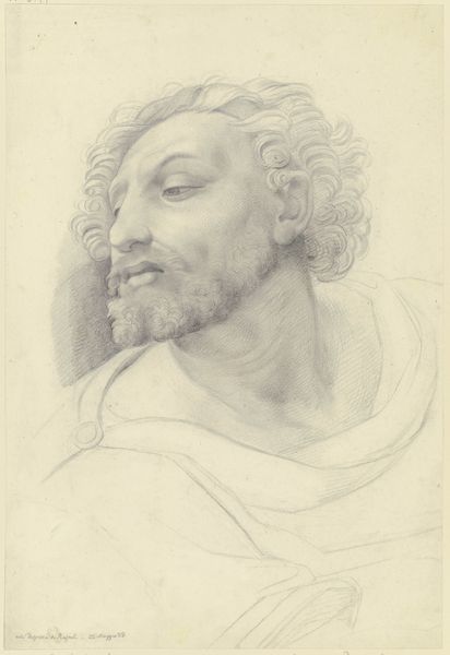 Editor: Here we have Francois Boucher's "Head of Christ," created sometime between 1727 and 1755 using pen and ink on paper. The drawing is so delicate and ephemeral—almost like a fleeting thought captured on paper. What stands out to you in this piece? Curator: The most compelling element, structurally, is the dynamism achieved through line. Consider how Boucher utilizes varied densities and directions to delineate form, create shadow, and suggest texture. Notice, particularly, the hatching around the neck and how this contrasts with the more flowing lines used for the hair. This tension gives the piece a visual energy. Editor: I see that. It’s almost as if the hatching is anchoring the figure, preventing him from floating away. Do you think the varying line quality has any symbolic significance? Curator: The semiotics are less definitive here, but it’s more a function of line and how its manipulation can articulate structure and therefore content. Instead, I focus on the formal properties. Note, the directionality implied by the figure’s gaze. Where does the work direct our own sightline? What philosophy underlies this specific arrangement of forms on the paper? Editor: The gaze is directed upward, giving a sense of hope or longing. Looking at it from this perspective makes the use of line even more intriguing, highlighting the face and its expression, giving the piece direction. Curator: Precisely. Boucher's skill in using the formal language of line is what makes this piece more than just a religious study; it transforms it into a sophisticated exercise in visual communication. Editor: I agree. Concentrating on line shows its effect, which creates a complex range of expressive outcomes and narrative interpretations. Thanks for this, your interpretation is invaluable.