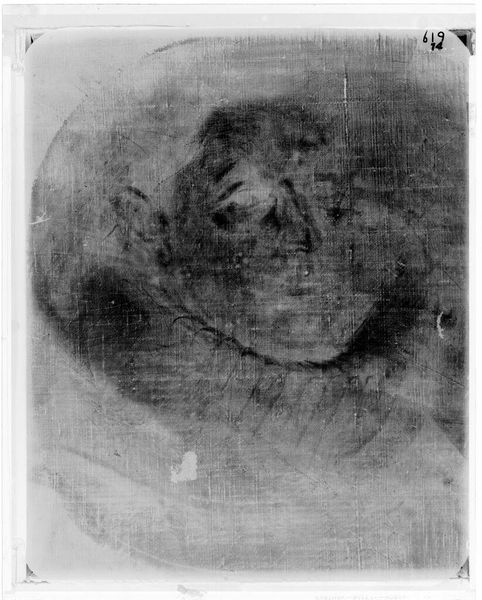 Editor: This is an x-radiograph of "Stephen van Rensselaer" by Mariotto Albertinelli, at the Harvard Art Museums. It's quite striking as an x-ray. What elements of its composition stand out to you? Curator: The radiographic image reveals a fascinating interplay of densities. Note how the lead white pigment, particularly in the face, absorbs more radiation, creating those stark contrasts. Editor: So, the varying shades indicate the layers and materials beneath the surface? Curator: Precisely. It allows us to dissect the artist's process, revealing the underpainting and pentimenti, and ultimately enriching our understanding of Albertinelli’s technique. Editor: It’s like seeing the skeleton of a painting! I appreciate your insight into how the medium itself shapes our interpretation. Curator: Indeed, the materiality informs the meaning.