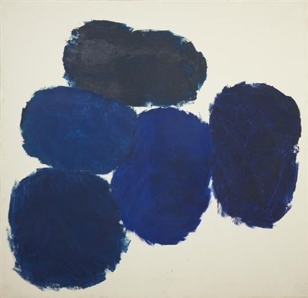 This is an untitled piece by Charlotte Posenenske, and it looks like it was made with paint on some kind of board or heavy paper. It's a direct kind of painting, where the process is right there on the surface. I love how the colors—a dark brown, a vivid blue, and a black—are laid down in these chunky, almost brick-like strokes. You can really see the texture of the paint, how it’s thick in some spots and thinner in others, creating this physical presence that jumps out at you. Look at the way the black paint sort of stacks up, one stroke over another, like she was building something. The immediacy of the mark-making really grabs you. It reminds me a little of the work of Franz Kline, but with a more architectural feel. Ultimately, it’s about the materiality of paint, the gesture, and the pure act of making. It’s about seeing what happens when color meets surface, and letting the process guide the way.