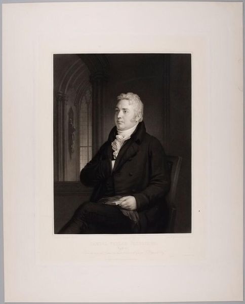Curator: This is John Henry Robinson's portrait of Sir Walter Scott, currently residing at the Harvard Art Museums. There's no specific date assigned to it. Editor: He looks as if he's aged prematurely. What a weight seems to sit on his shoulders! Curator: There's a notable stillness about him. The cane suggests frailty, but there's a defiance in his eyes. Consider the symbolism of the objects nearby: the book, the inkwell… These were his weapons. Editor: Weapons? Well, perhaps. But they're also symbols of the stories he wove. Maybe he's just tired after a long day of battling with words. Curator: Indeed. The image resonates with a profound sense of cultural memory. Scott remains a literary titan, influencing how we perceive Scotland's history and identity. Editor: All the same, I think he looks as though he needs a long vacation. Curator: Perhaps we all do.
