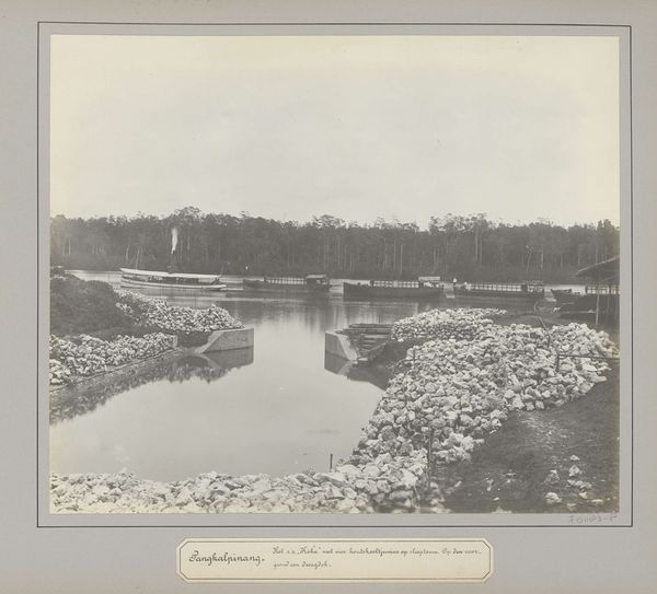 Editor: Here we have James Gardner's photograph, "Pontoon Bridge Across the James." It looks like it was taken during the Civil War. What strikes me is how fragile the bridge looks compared to the weight of history it carries. What stands out to you? Curator: The photograph captures a moment rife with tension. Consider the James River, a vital artery for the Confederacy. This bridge isn't just a physical structure; it's a symbol of Union ambition and the disruption of established power structures. How does Gardner's framing influence your understanding of the power dynamics at play? Editor: So, it's not just about the bridge itself, but what it represents in the context of the war and the struggle for power? I never would have thought of that. Curator: Precisely. And understanding that context allows us to see the photograph as a powerful statement about the changing landscape of America.
