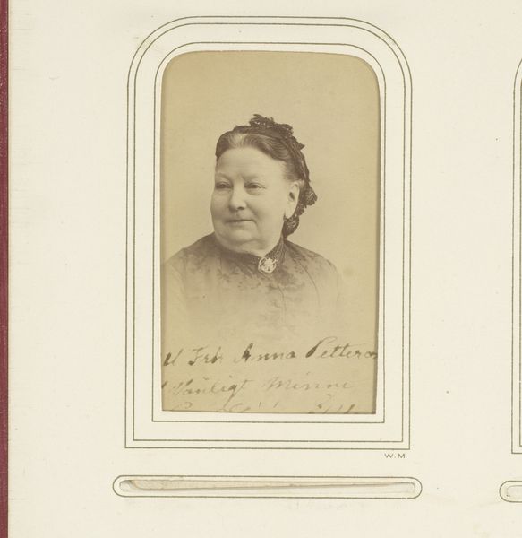 This small photograph, made by Albert Greiner, captures a woman in traditional dress. It’s a salt print, an early photographic process, and the sepia tones give it a rich, nostalgic feel. The salt print was a paper-based technology, relatively inexpensive to produce, and perfectly suited to capturing likenesses in a burgeoning market. The process involved coating paper with a silver salt solution, then exposing it to light through a negative. The resulting print has a soft, slightly grainy texture, with subtle gradations of tone. This particular portrait highlights not only the sitter but also the skilled traditions of dressmaking and jewelry. Her lace collar and elaborate pendant suggest a certain social standing, while her traditional cap speaks to a regional identity, both now documented and distributed thanks to the industrialized magic of photography. By focusing on its material and making, we can see how this modest photograph connects to broader themes of labor, class, and the rise of consumer culture in the 19th century.