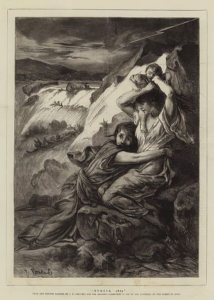 Editor: John Raphael Smith created "The Widow of an Indian Chief Watching the Arms of Her Deceas'd Husband." The somber mood is palpable. What symbols stand out to you in this piece? Curator: Notice how the artist contrasts the fragility of the figure with the implied violence of the storm and weaponry. It speaks to cultural memory, doesn't it? The widow embodies loss, but the arms represent power. Editor: So the arms are not just weapons, but symbols of her husband's status and their shared identity? Curator: Precisely. The imagery is potent. The lightning could represent divine anger or the widow's inner turmoil. What do you think? Editor: I see how the visual language creates a narrative beyond the literal depiction. Curator: Indeed. The artwork reflects the era's complex relationship with indigenous populations, idealizing yet othering them. The piece serves as a powerful reminder of how symbols shape our understanding of history and culture.