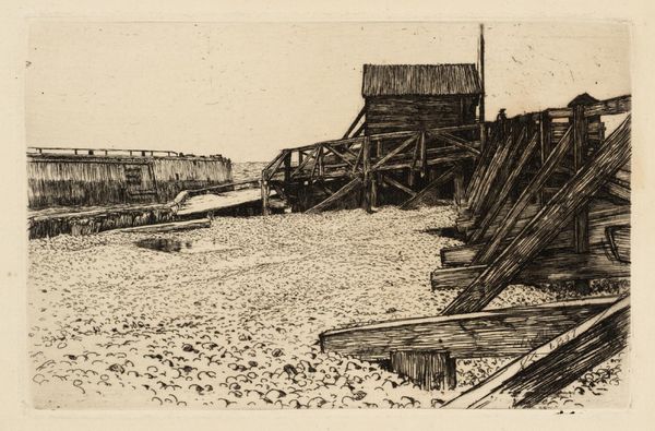 Linwood Easton created this etching, Gus' Boat, Lincolnville, sometime before his death in 1939. It depicts a modest boat harbored at a simple dock near the shore. What is the public role of this art? Etchings were often made to be reproduced, sold, and collected by ordinary people. The relative affordability of etchings made them a democratic form, a stark contrast with unique oil paintings owned by wealthy elites. Easton's picture creates meaning through its depiction of everyday life. It shows a typical working boat, a common sight in Maine during this period. The scene evokes a sense of place and local identity. It’s a snapshot of small-town life, far removed from the grand narratives of history. Easton’s choice of subject reflects a broader trend in American art during the early 20th century: an interest in the lives of ordinary people. The print is not overtly political, but its democratic aesthetic embodies the values of its time. This etching reminds us that art history is not just about masterpieces, but it also encompasses the everyday images that reflect the values and experiences of a particular time and place.