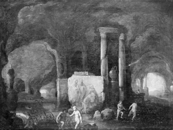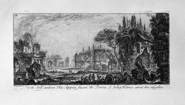 Editor: So, this is Egbert van der Poel’s "Fire by Night," painted sometime between 1636 and 1664, using oil on wood. The monochrome palette and depiction of destruction give it a really somber feel. What do you see in this piece? Curator: I see the materiality of disaster, quite literally. Van der Poel wasn’t just painting a scene; he was crafting an object laden with the implications of widespread destruction. Notice how the paint itself mimics the smoke and ash. Consider, too, the ready availability of wood as a common material. Was the cheapness or the abundance of wooden supports of that time conducive to making paintings documenting such horrific events? Editor: That's interesting. It's like the low cost and availability of the wood supported the documentation of catastrophe. Does that impact how we see genre or history painting at that time? Curator: Precisely. Van der Poel’s choice of a mundane support like wood infuses the “high art” genre of history painting with the grim reality of daily life. Moreover, what impact does this piece have on the people and patrons who commissioned, viewed, and later, consumed it? Editor: So, it challenges our expectations of who gets to represent history and how. Was van der Poel implying something about social hierarchy here? Curator: Indeed. Think about the labour involved in creating the artwork versus the labour lost in the depicted fire. Consider also the monetary support of a patron: where would those finances be best directed? This juxtaposition invites reflection on the very systems that support both art and society, doesn't it? Editor: Absolutely. It's made me reconsider how seemingly simple material choices can carry profound social commentary. Thanks, I have something to think about. Curator: Likewise. Looking at the artist's choice and means of production and support opens an intriguing path into social criticism.