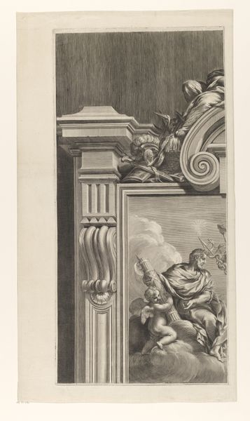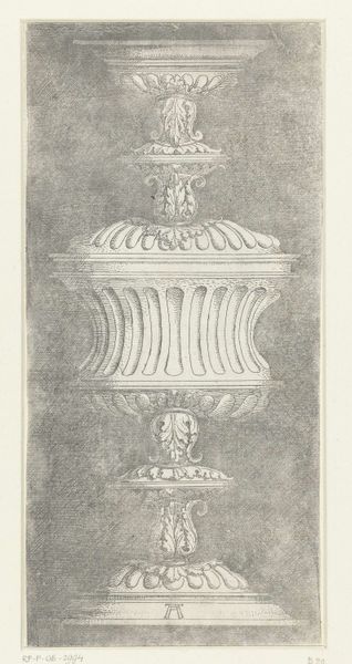 Editor: This is "Vaas met meermannen en masker," or "Vase with Mermen and Mask," an engraving by Gabriel Huquier, dating from between 1729 and 1737. The longer I look at it, the more unsettling the imagery feels—there’s something about the combination of classical form with grotesque figures. What catches your eye when you look at this? Curator: Immediately, I see the blending of the grotesque with classical ideals, which tells us much about the period. Masks, mermen, swirling figures - they're all powerful symbols drawn from classical mythology and used repeatedly in Baroque art and design. Note how the mermen and masks integrate—these aren’t simply decorative additions, they represent transformation, the fluid boundary between human and animal, and the power of the sea. This vase evokes cultural memories and the enduring power of myth to shape our understanding of the world. Editor: So, the mermen and the mask aren’t just decorative choices; they actively contribute to the vase's meaning? Is that why the artist intertwined those snakes as handles? Curator: Precisely! Consider snakes: They're incredibly rich in symbolism across cultures—representing healing, rebirth, but also chaos and danger. By including the snakes and the figures from classical stories, Huquier is able to tap into very old archetypes that still resonated in 18th-century society. It asks what we remember and value from the past, and what meaning that history continues to hold. What emotions do these symbols evoke in you? Editor: Initially, a sense of unease. Now, understanding the depth of the symbols, it makes me think about the continuity of these stories, even today. The shock of seeing those mermen also gets dulled a bit with each re-telling through the ages. Curator: Indeed! We carry our cultural memory with us, changing it and being changed by it, much like this vase carries its tales. It has certainly provided us much to reflect on. Editor: Yes, and made me think about the power of art to embody enduring symbols. Thank you for the insights.