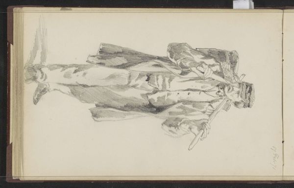 Editor: So, this is "Man met een hoge hoed," or "Man with a Top Hat," possibly from 1871 or 1872, a pencil drawing by Cornelis Springer. It's held at the Rijksmuseum. The first thing that strikes me is how relaxed and almost… candid it feels. I’m curious, what do you see in this piece beyond just a simple sketch? Curator: Candid is a good word! It feels like a stolen moment, doesn't it? For me, it whispers of the 19th-century flâneur, the urban wanderer, observing but never quite participating. Look at the detail in the clothing compared to the vagueness of the background. He’s meticulously dressed, but the world around him fades away. Makes you wonder, doesn't it, what preoccupied his mind? Perhaps the pursuit of novelty or maybe just surviving a chilly day in Amsterdam. Editor: I hadn't thought of the flâneur angle! That definitely adds a layer. But is that deliberate, or is it just the nature of a quick pencil sketch? Could it be just a study, or something more profound? Curator: Ah, the beautiful ambiguity of art! Springer was known for his cityscapes. So perhaps this gentleman, in his rendered specificity, was just meant to inhabit one. Then again, maybe Springer captured a quiet commentary on societal roles – the hat suggesting status, the pose revealing introspection. What if we read the vagueness as a kind of… psychic space? Editor: Psychic space – I like that! It makes it feel less like a study and more like a glimpse into a person. This really does show that even seemingly simple sketches can be such rich material. Curator: Absolutely. The artist gives us so much more than just an image, and then we have to supply the context and let our own experiences take us further in! Every sketch has secrets; it’s our job to uncover them or better yet, dream them.