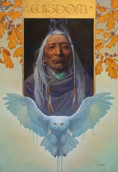 Thomas Blackshear painted this work, "Indian Paintbrush", in our own time, though its symbolism reaches back through centuries. Notice the central figure adorned with symbols of nature. The peacock feathers and the butterfly aren't merely decorative; they echo through art history as symbols of vanity and transformation respectively. The golden sun disk behind the figure's head—a halo of sorts—reminds us of divine figures across cultures, from the Apollo of ancient Greece to the Christian saints. Consider how Blackshear has woven together these motifs. The act of artistic creation is here imbued with a sense of spiritual significance. The paintbrush, dripping with golden paint, is not just a tool but a conduit of divine creation. We are reminded that the artist may be channeling powerful forces, tapping into a collective memory of shared human experiences and beliefs. This image speaks to something primal, a connection to nature.