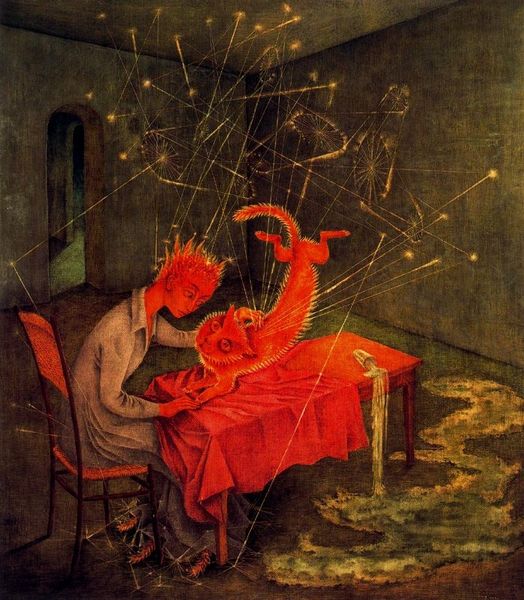 Remedios Varo created ‘By Aquarium’ using oil on masonite, and like many of her works it depicts a dreamlike world with meticulous detail. Looking closely, you can see a fascinating relationship between the surfaces of the figures and their inner mechanics. The artist used delicate brushwork, and the effect is almost like looking at an engineering drawing. It speaks to the era of industrial production that Varo inhabited, even though the scene is otherworldly. Varo was clearly interested in how machines and humans interact. Notice the figure on wheels, whose garments drape in precise folds. She almost appears to be part of an elaborate clockwork mechanism. It speaks to the human obsession with control and the potential for both creation and destruction within it. Ultimately, Varo invites us to reflect on our relationship with the material world, and the unseen forces that shape our reality, blurring the lines between art, craft, and the complex machinery of modern life.