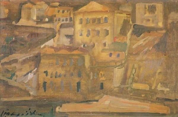 Pyotr Konchalovsky painted this oil on canvas, entitled Piazza della Signoria in Siena, sometime in the first half of the 20th century. Konchalovsky was a key member of the Jack of Diamonds group of Russian avant-garde artists. The group's aesthetic was influenced by French Post-Impressionism, but they were especially interested in the gritty realities of urban life and the expressive potential of so-called 'low' or 'naive' art forms, such as folk art and sign painting. Here, we see a modern take on the Italian cityscape. The scene presents an urban landscape that is both monumental and intimate. The buildings are rendered in bold, simplified forms with thick brushstrokes, typical of early 20th-century modernist painting. But the muted palette and the presence of human figures give the painting a certain warmth. To understand Konchalovsky's artistic choices fully, we might consult exhibition reviews from the period. What did critics and fellow artists have to say about his approach? How did his engagement with Western European styles intersect with his sense of Russian national identity? These are some of the questions that art historians try to answer.
