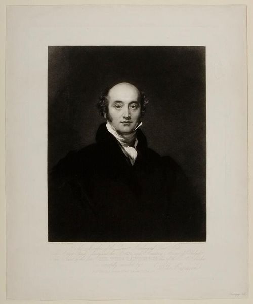 Editor: Here we have Henry Raeburn’s portrait of Alexander Maconochie, painted sometime between 1777 and 1861, using oil paints. I'm immediately drawn to the sitter's gaze; it seems both direct and contemplative. What can you tell me about this work? Curator: The intensity you perceive is quite fascinating, especially when we situate Maconochie within the 19th-century context of penal reform. As a naval officer and later a penal reformer, Maconochie advocated for rehabilitation over retribution in the prison system. The portrait captures a man who challenged the deeply entrenched social structures of his time. How do you think Raeburn's artistic choices reflect, or perhaps even challenge, the dominant ideologies of that era? Editor: I hadn't considered the connection between his profession and the portrait. His somewhat stern expression now reads more as determination. Is there a relationship between his ideas about incarceration and his social status at that time? Curator: Absolutely. Maconochie’s ideas were radical for his time and were often met with resistance from those invested in maintaining the status quo. Consider the composition—a single figure set against a dark background. It draws our attention to the individual. It begs us to think about how power, justice, and societal reform are all manifested within an individual's experience and how such manifestations impact the most vulnerable populations. Do you think Raeburn’s choices give credence to or perhaps subtly undermine the figure’s controversial position? Editor: I suppose emphasizing the individual humanizes him and might sway the viewer towards his reformist ideas, seeing him as a person with a vision rather than simply a radical. Thank you. That has really helped me view this painting from a whole new perspective! Curator: My pleasure. Hopefully, by linking Maconochie's likeness to social reform, we can use his image to further encourage viewers to interrogate contemporary issues of race, class and gender inequalities that persist within our criminal justice system today.