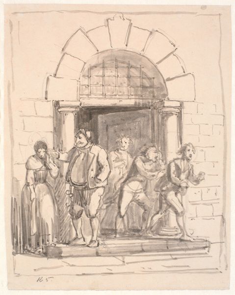 Editor: Here we have Martinus Rørbye’s "Italiensk gade med fisker i baggrunden," made with pencil in 1835. It's a sketch of an Italian street, and I'm immediately struck by how it captures a quiet moment of everyday life, yet there’s a stillness that feels a little melancholic. How do you interpret this work? Curator: The drawing is indeed a capturing of the everyday. But let’s think about Rørbye, a Danish artist traveling in Italy in the 1830s. What did it mean for a Northern European artist to depict the ‘exotic’ South? This wasn't simply documentation; it was a cultural encounter loaded with power dynamics. Editor: Power dynamics? In a simple street scene? Curator: Consider the figures in the background and the fisherman seated to the side. Rørbye isn't just showing us a street, but staging a scene where the locals are observed, even ‘studied.’ Is this documentation or observation? Who does this benefit? What is he seeking, and what is he saying about his own culture by portraying another? It’s less about the individual figures and more about Rørbye's gaze and what it reveals about Danish society’s understanding of ‘otherness.’ Editor: That’s a perspective I hadn't considered. It really shifts my understanding from a charming scene to a more complex commentary on cultural perception. Curator: Exactly! Art often serves as a lens through which we can examine historical and societal relationships, even in seemingly straightforward depictions of everyday life. It's a prompt for us to question and challenge the inherent biases in representation. Editor: Thanks for making me think about the sketch in an entirely new way. It seems there is always an opportunity to consider context.