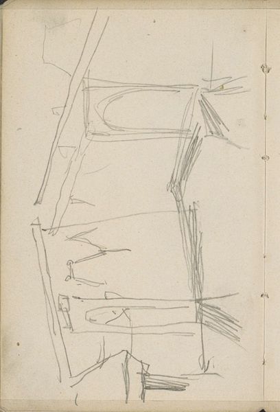 This is George Hendrik Breitner’s sketch, "Stadsgezicht met molens," or "Cityscape with windmills." Breitner lived and worked in Amsterdam during a time of rapid urbanization and social change. His art captures the spirit of the working class and the gritty realities of city life. Breitner, who was known for his realistic and sometimes melancholic portrayals, reflects the transient nature of urban existence. The quick lines and unfinished quality capture a sense of immediacy, as if the scene were jotted down in a fleeting moment. The windmills are a tangible link to the past and also function as a reminder of the relentless march of modernity. Consider the environmental and social implications, what is lost and what is gained during modernization? This sketch resonates because it reminds us to consider our ever-changing cultural landscape.