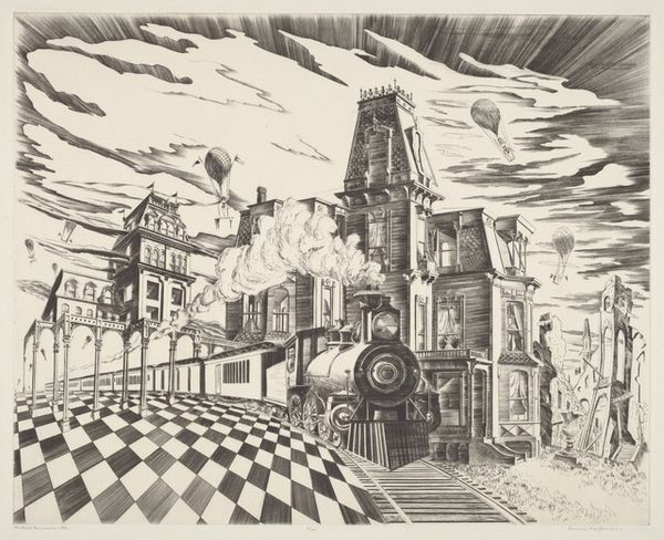Editor: This watercolor drawing, "Interior of Pullman Coach, 1888," was created by an anonymous artist sometime between 1935 and 1942. The attention to detail is amazing, and I'm really drawn to the ornate woodwork. What stands out to you? Curator: Well, beyond the realism, I see a potent symbol of aspiration and societal division. Consider the opulence depicted: the plush velvet, the carved wood, the gleaming chandeliers. What does that imagery evoke for you? Editor: Luxury and exclusivity, definitely. Almost a theatrical set. Curator: Precisely. This interior wasn’t just about comfort; it projected an image. A carefully crafted stage for a specific class. Notice how the seats are arranged; the passengers isolated, even in such confined space. The items left behind evoke ghostlike memories. Do you get a sense of stories untold? Editor: I do. Each belonging suggests a narrative – a traveler, their destination, maybe even their social standing. It's interesting how those subtle hints shape our perception of the scene. What would it be like to experience the work in real life? Curator: Perhaps the space acted as a sort of cocoon, isolating wealthy individuals within the masses in transit. Its visual symbolism allowed it to transport more than people between places – it ferried meaning and ideas to and from their journeys. Editor: That's fascinating. It makes you wonder about the psychological effect these spaces had on people then – and how similar displays of wealth affect us today. I learned a lot by looking at the cultural meanings embedded in it. Curator: Indeed. The visual language of objects shapes our understanding of the past, and reflects on our present.